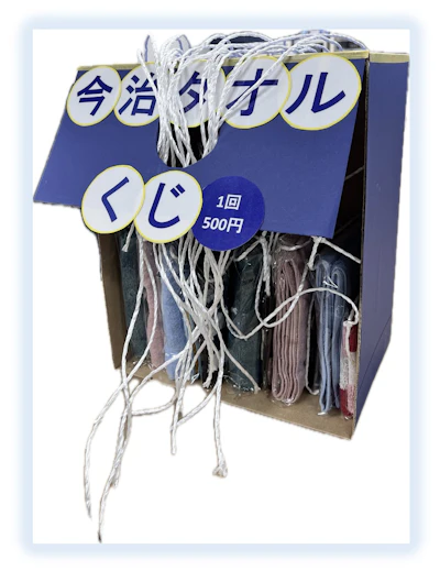 今治タオル認証ハンカチや今治製のフェイスタオル(B品色の糸ほつれや傷はなく使用上問題のない商品)のいずれかが当たる破格の500円千本クジ!