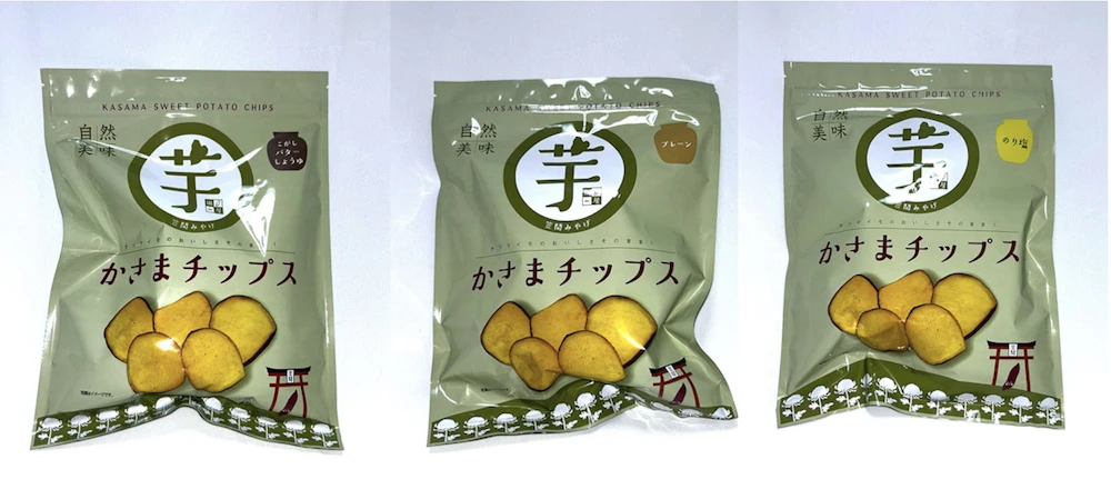 フレーバーはプレーン、こがししょうゆバター、のり塩。全て手作りで、さつまいも本来の自然な甘みや風味を味わっていただけるように調理しています。