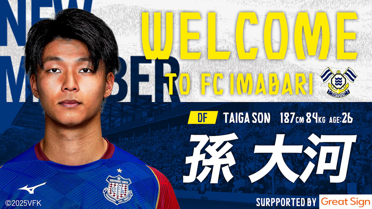 この度、ヴァンフォーレ甲府より孫 大河(ソン タイガ)選手が完全移籍で加入することとなりました。