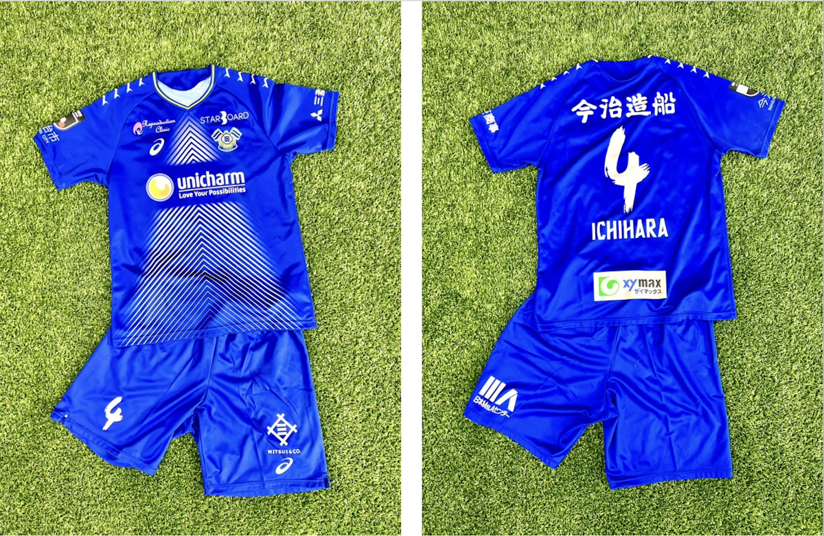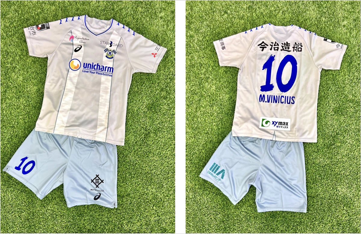 2025シーズン、選手が実際に着用しJ2のピッチで戦った大変貴重なユニフォーム(上下)や、アシックス里山スタジアムのホームロッカーで使用した選手銘板。