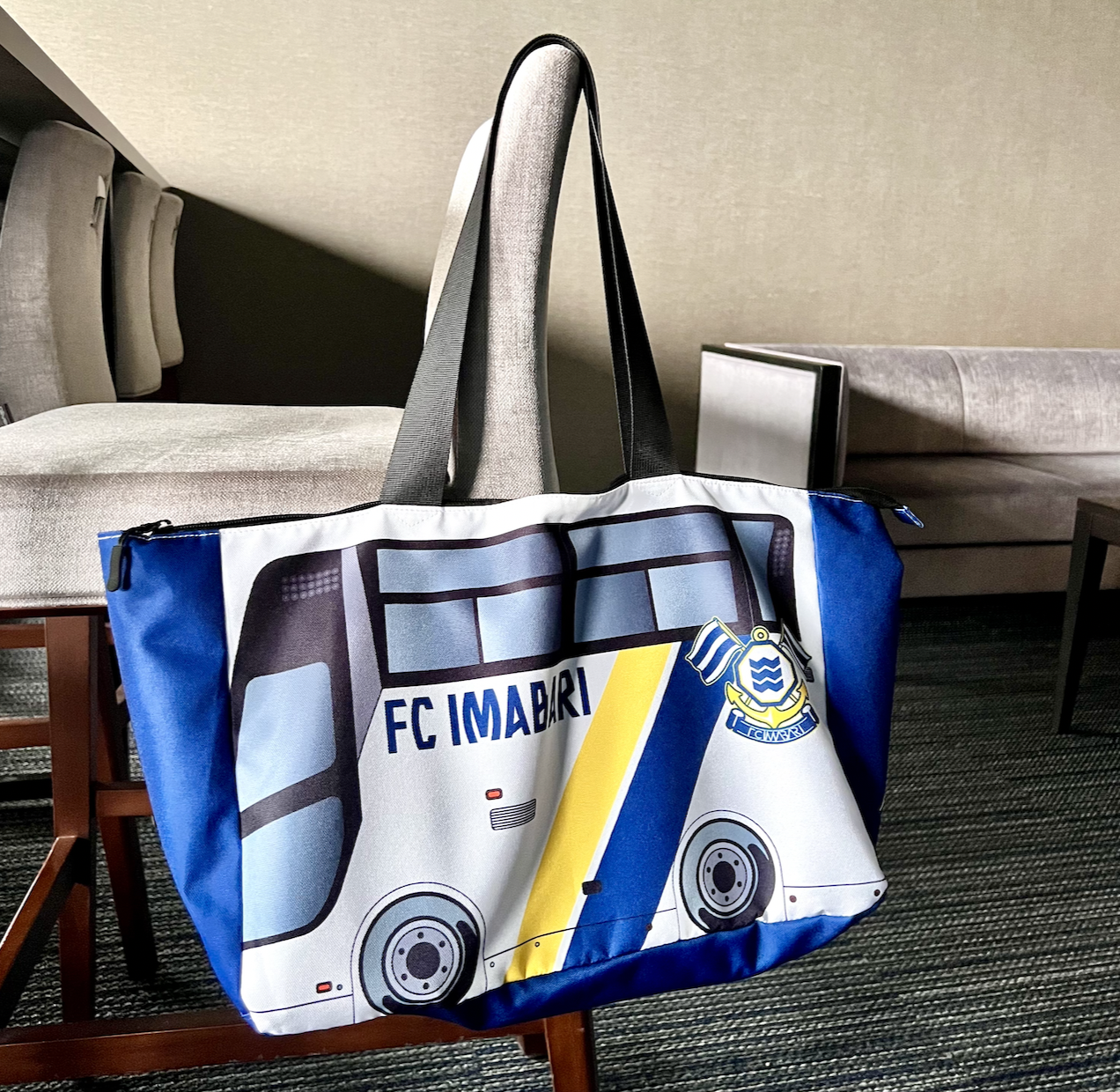 選手が移動やスタジアム入りの際に乗るバスのデザインをプリントしたトートバッグ!
