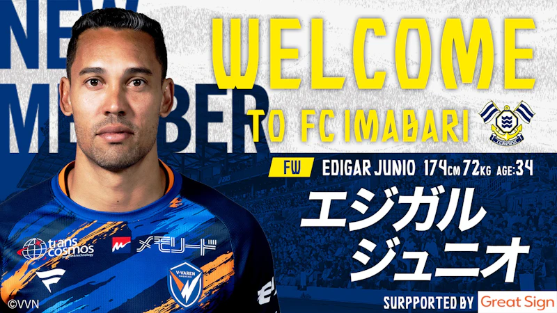 この度、V・ファーレン長崎よりエジガル ジュニオ選手が完全移籍で加入することとなりましたのでお知らせいたします。なお、エジガル ジュニオ選手とは、今後メディカルチェックを経て、正式契約を結ぶ予定となっております。