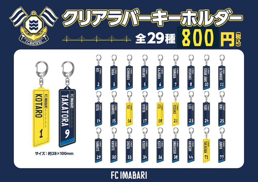 選手のネーム&ナンバーを使用した、透明感のある素材感のクールなクリアラバーキーホルダー!