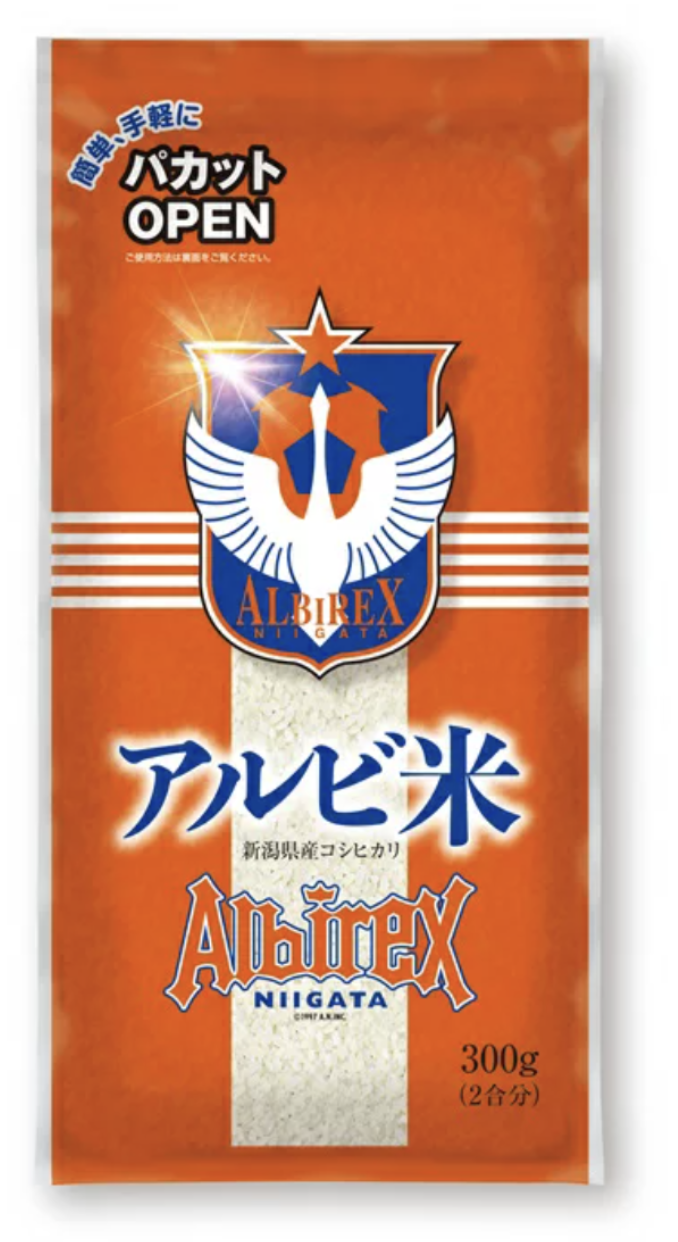 アルビレックス新潟のオリジナル商品「アルビ米」。