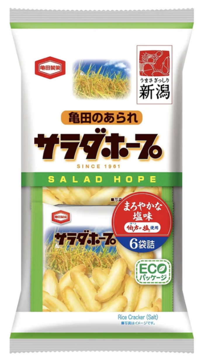 ひとくちタイプのかる〜いあられです。サクサクの生地とまろやかな塩味がとまらないおいしさです。新潟限定なのでレアな商品となっております!