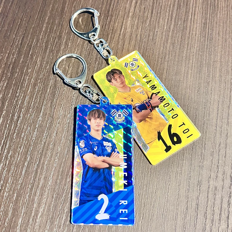 選手の名前を漢字やカタカナで表現したアクリルキーホルダー。