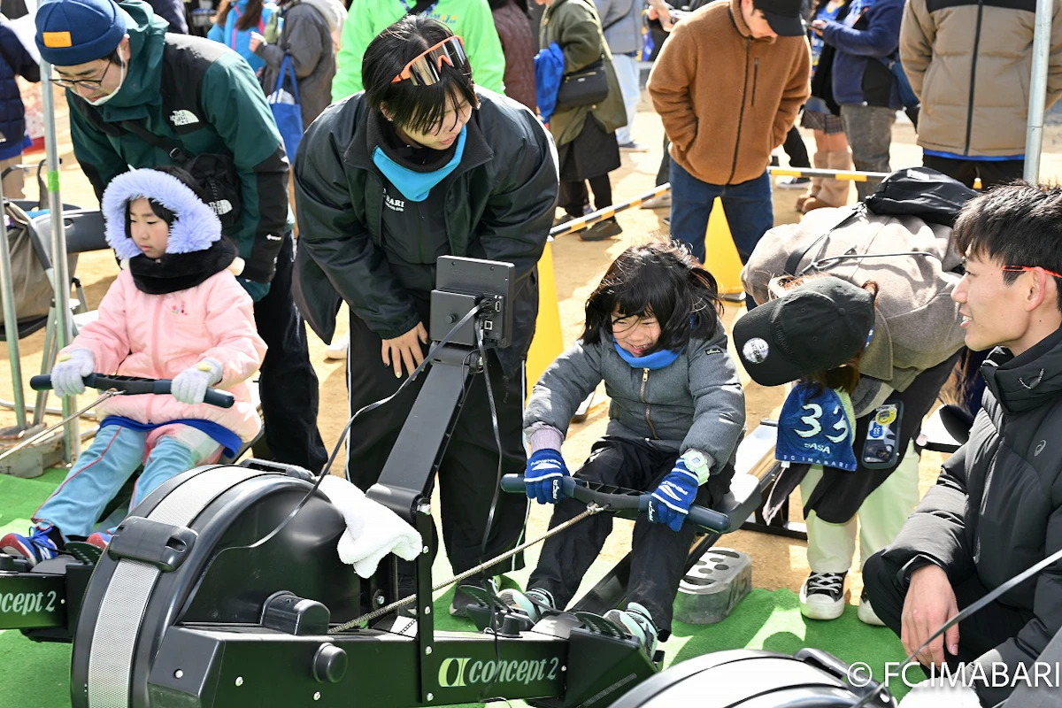 毎年恒例となっている今治造船ローイングチームによるエルゴメーターレースを今年も開催いたしました。エルゴメーターと画面を連動させてみんなでレースを実施しました。