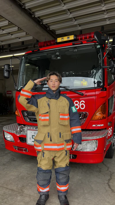 消防車と救急車の車両展示に加え、消防士さんが着る防火衣の着衣体験ができます!