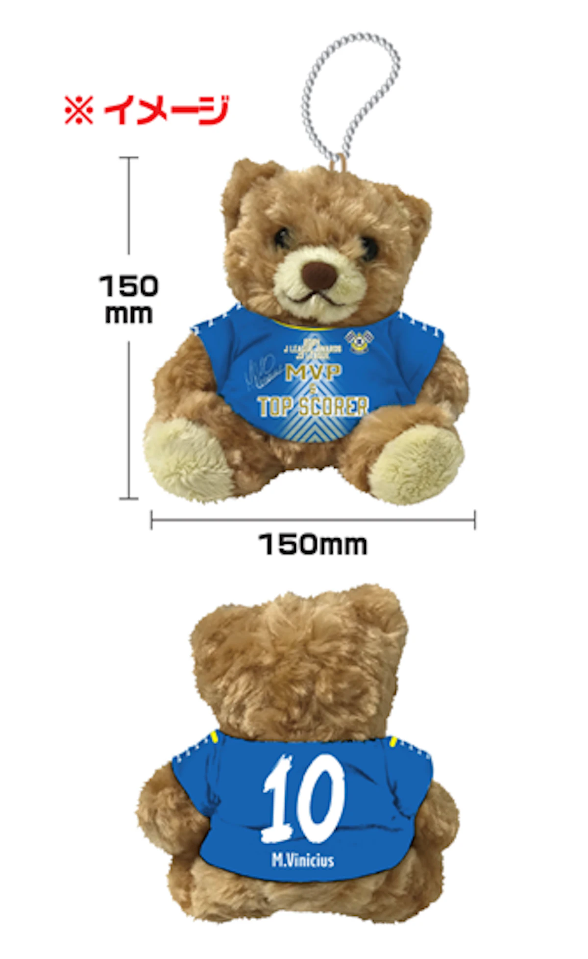 前面には「MVP & TOP SCORER」、背面にはM.ヴィニシウス選手の背番号とネームがプリントされたメモリアルなユニフォームベア。
