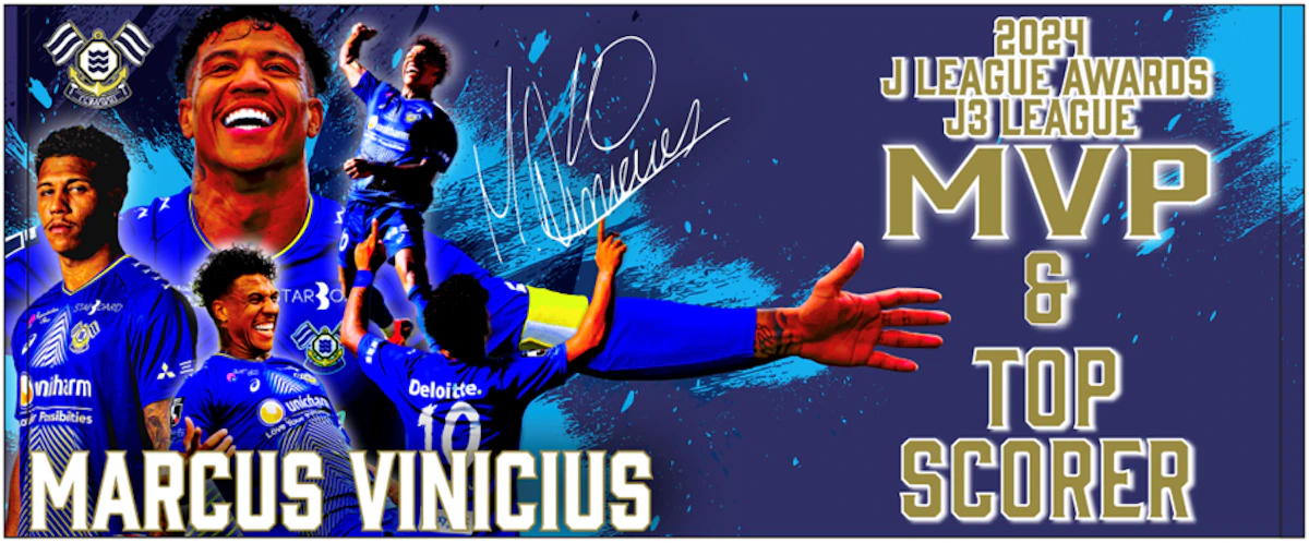 2024明治安田J3リーグ にて、MVP受賞及び得点王という栄誉に輝いたM・ヴィニシウス選手のメモリアルグッズの受注受付を開始いたします。