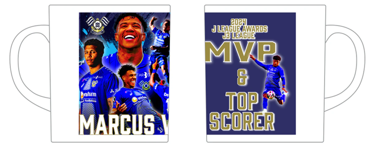 2024明治安田J3リーグ MVP受賞、得点王のヴィジュアルをプリントしたメモリアルなマグカップ。