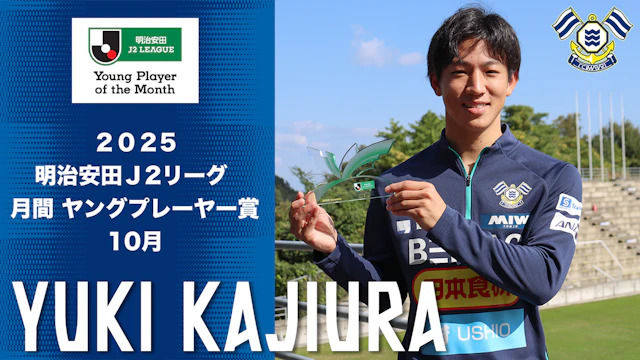 各月の明治安田Jリーグにおいて、「印象に残るプレーをし、今後の更なる活躍が期待できる21歳以下の選手」を表彰する「2025明治安田J2リーグ 10月 月間ヤングプレーヤー賞」を当クラブの梶浦 勇輝選手が受賞しましたのでお知らせいたします。