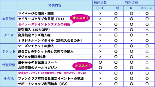 ※ファンクラブは、2026/27シーズンからは、通常の1シーズンプランの販売も行う予定です。