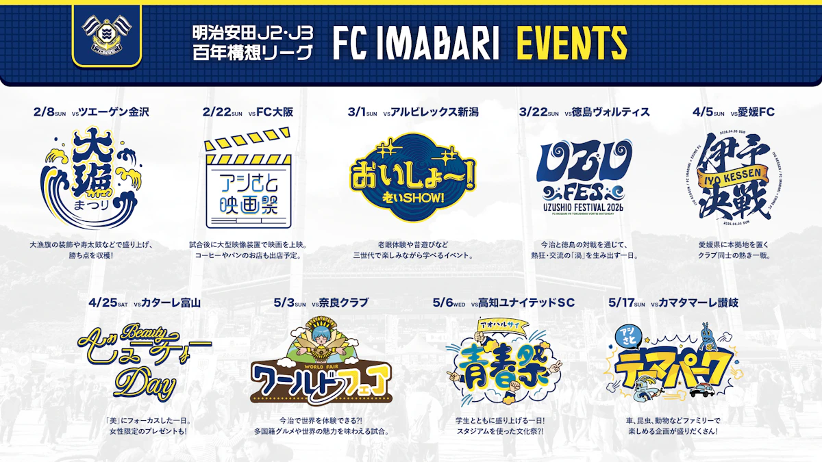 3月22日(日) | 徳島ヴォルティス | UZU FES | 今治と徳島の対戦を通じて、熱狂・交流の「渦」を生み出す一日。 |