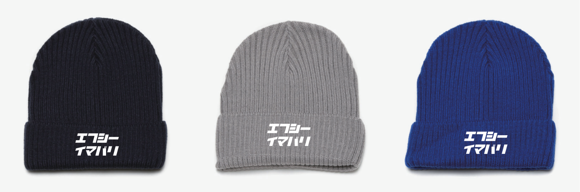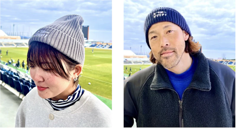 「エフシーイマバリ」のロゴがキャッチーな、日常使いし易いシンプルなニットキャップ。