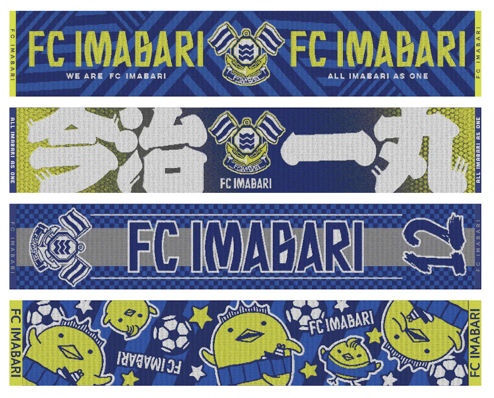 FC今治の観戦ますとアイテム「タオルマフラー」百年構想リーグの新作はなんと4デザイン!上から