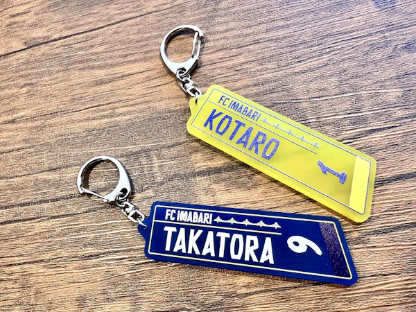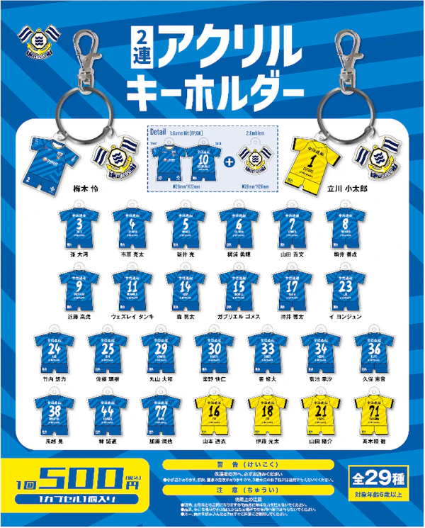 百年構想リーグ、最初のシークレットグッズは選手のネーム&ナンバーを使用した、透明感のある素材感のクリアラバーキーホルダー!
