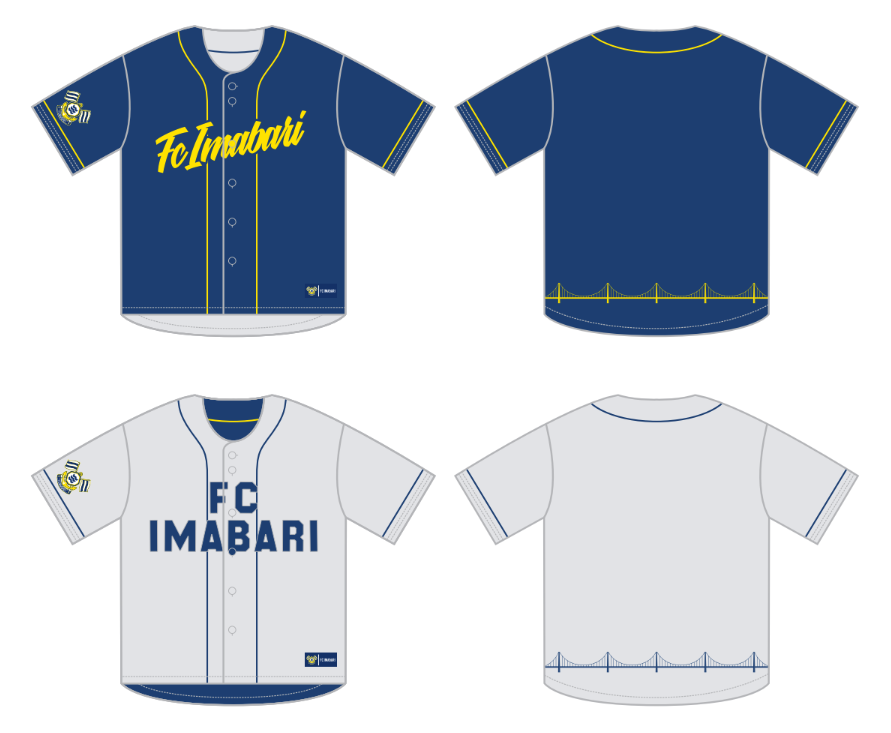 ホワイトは高校野球をイメージしたロゴがエモーショナルなデザインです。また、今治のシンボル「来島海峡大橋」をイメージした橋のシルエットデザインが背中下部にレイアウトされ、アイデンティティを感じさせます。