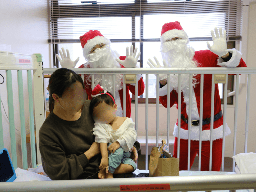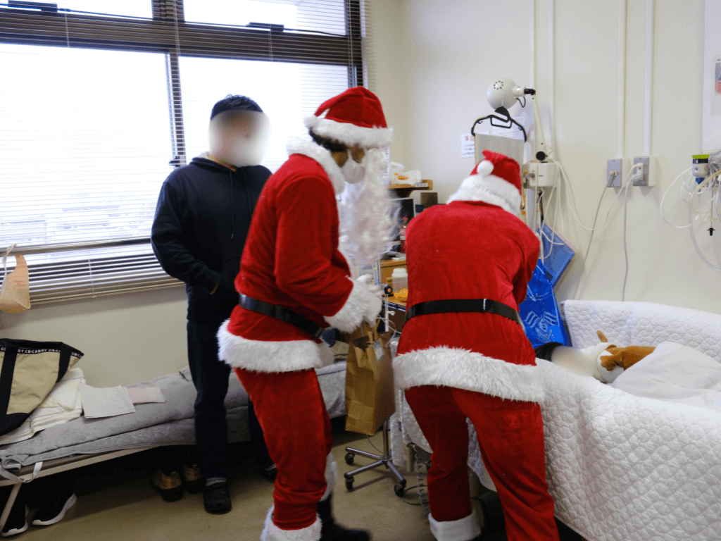 FC今治スタッフが、愛媛県立今治病院の小児科病棟を訪問しました。クリスマスイブをさまざまな事情で病院で過ごす子どもたちに、笑顔でイブを過ごすお手伝いをしたいと企画、実施いたしました。