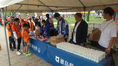 徳島サポーターを対象に、『村上海賊の娘 どら焼』などの特産品や観光パンフレットを配布します。
