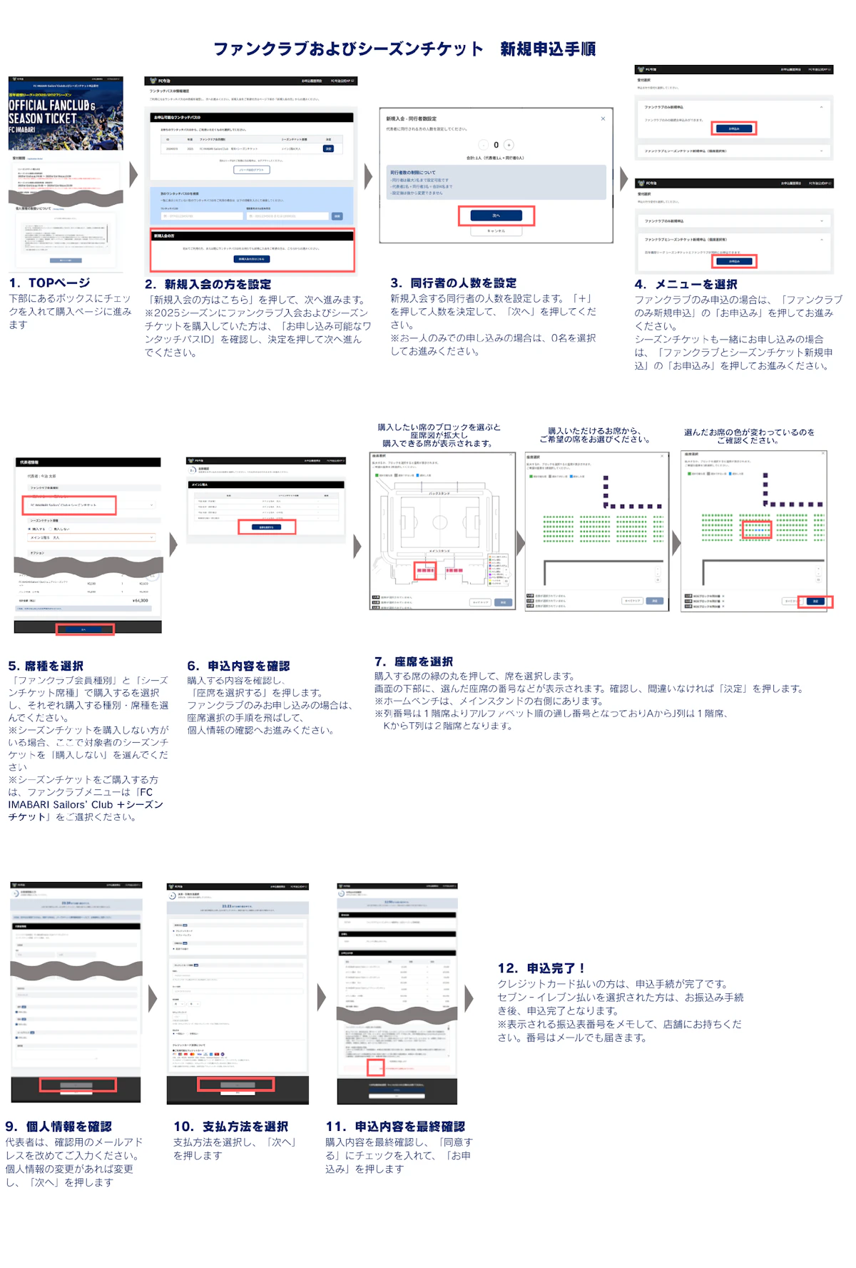 ※FC IMABARI Sailors’Club(以下ファンクラブ会員)の受付については、別途ご案内いたします。