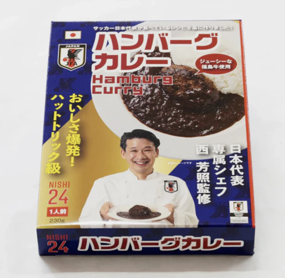 サッカー日本代表専属シェフの西芳照氏が、実際に選手に提供している特製カレーをレトルトカレー用のレシピとして監修した、完全オリジナルのレトルトカレーです。