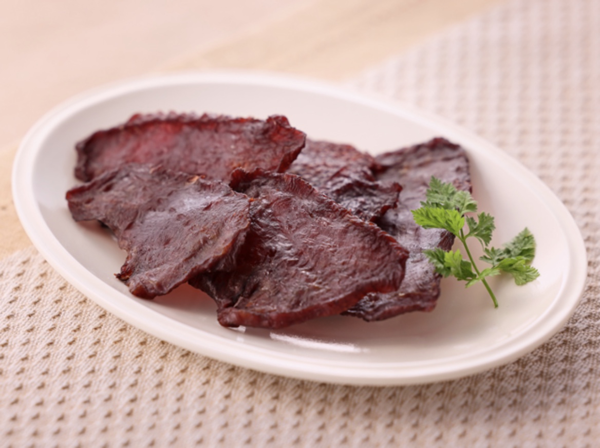 赤ワインベースの調味液で一昼夜漬込み、じっくり乾燥させました。牛たんと赤ワインの独特の旨味が特徴です。