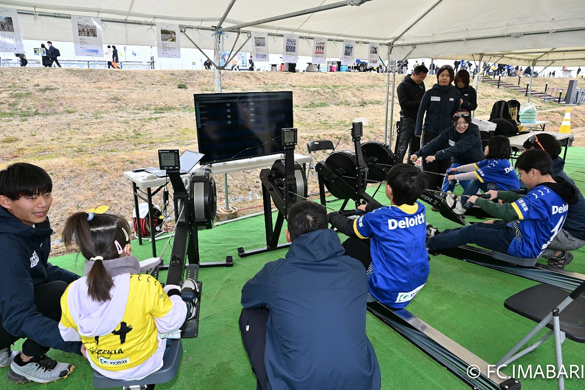 毎年恒例となっている今治造船ローイングチームによるエルゴメーターレースを今年も開催。エルゴメーターと画面を連動させてみんなでレースをしよう!参加していただいた先着100名の方には選手のサイン入りいまぞう君マグネットをプレゼント。 誰のサインをもらえるかはお楽しみ!