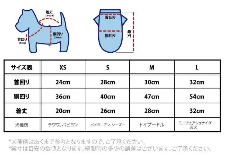 小型犬用:XS、S、M、L