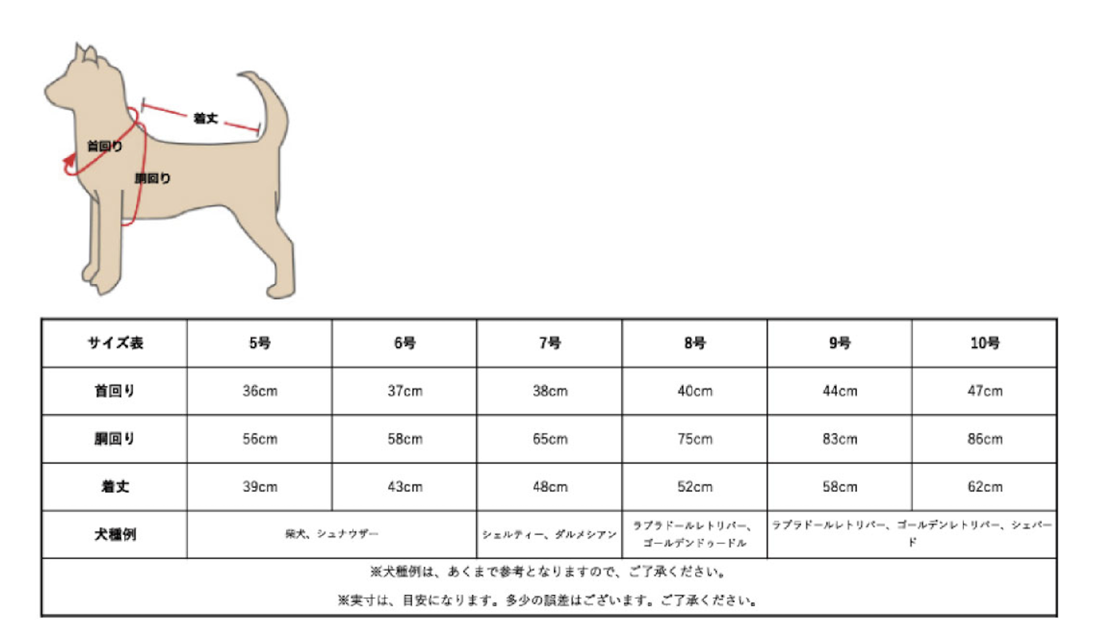 中型・大型犬用:5号、6号、7号、8号、9号、10号