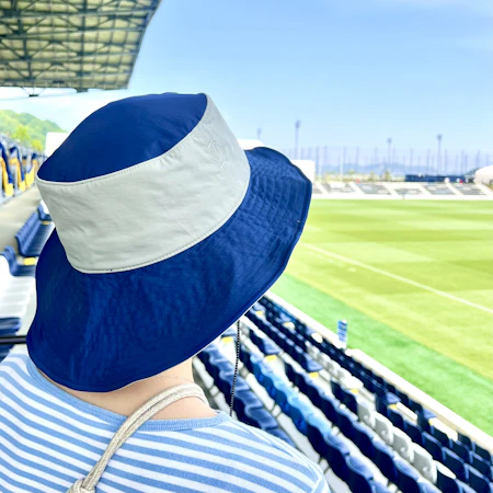 クラブカラーの2トーンでまとめたので、観戦シーン以外にも、アウトドアシーンでも合わせやすい便利なハットです。