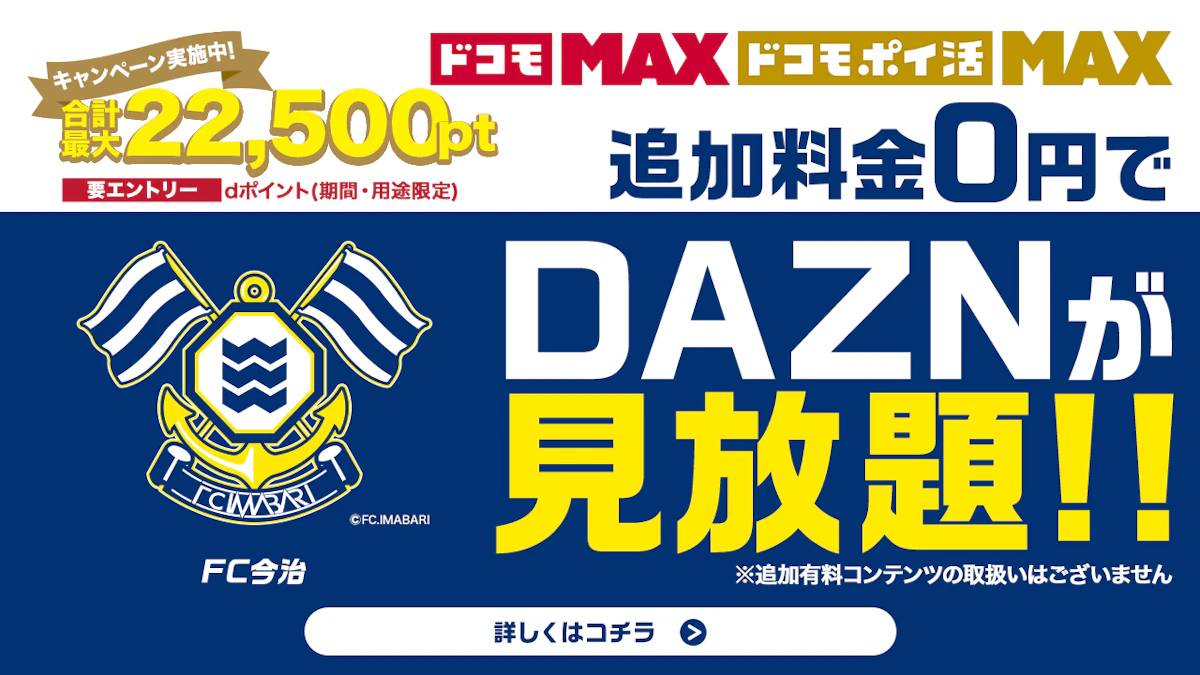 FC今治は、株式会社NTTドコモとの協業により、「ドコモ MAX」「ドコモ ポイ活 MAX」ご契約者様を対象としたキャンペーンを実施いたします。