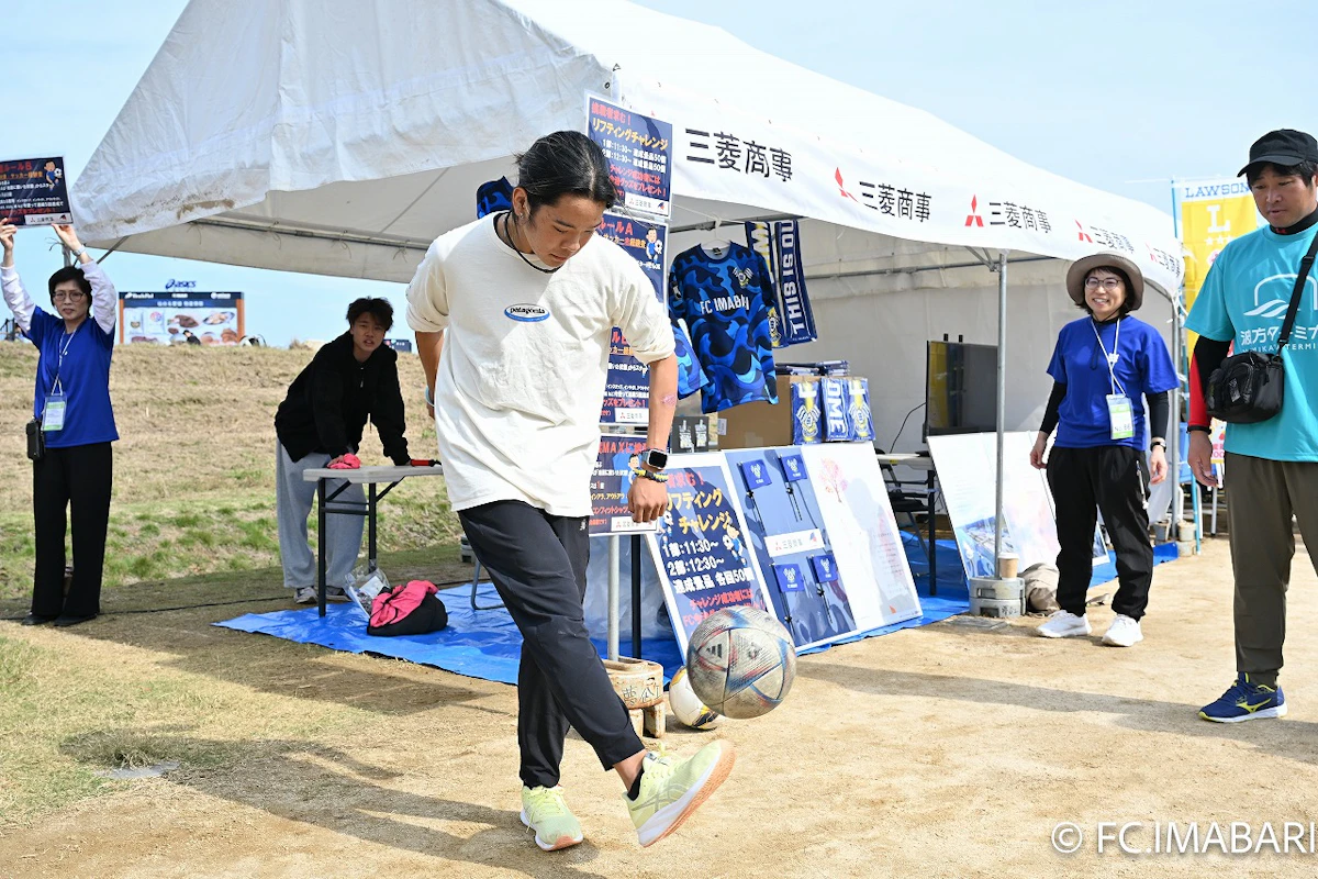 三菱商事ブースでは、三菱商事の取り組みを映像やパネルでご紹介に加え、ブース横では今年もリフティングチャレンジを実施しチャレンジ成功者にはFC今治グッズをプレゼントをしていただきました!!