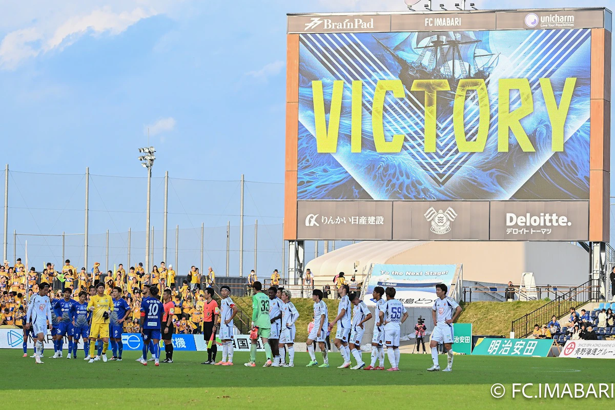 特に終盤の仙台の波状攻撃に対して、GKと最終ラインが一体となって虎の子の1点を守り切りました。試合は3-2で勝利し、強敵仙台をホームで撃破。今治はJ1昇格プレーオフ進出へ望みをつなぐ勝点3を獲得しました。