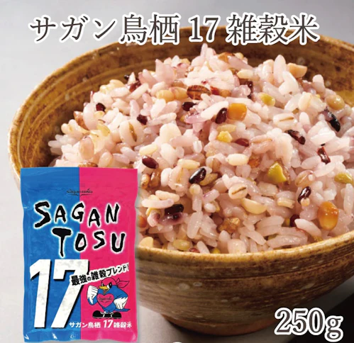 17種類の雑穀をブレンドした、サガン鳥栖オリジナルの雑穀米です。 香り高く、彩り豊か、ぷちぷち・もちもちの食感がクセになる一品。 お弁当にも使っていただけるように冷めてもおいしく、どなたでも食べやすい雑穀米です。
