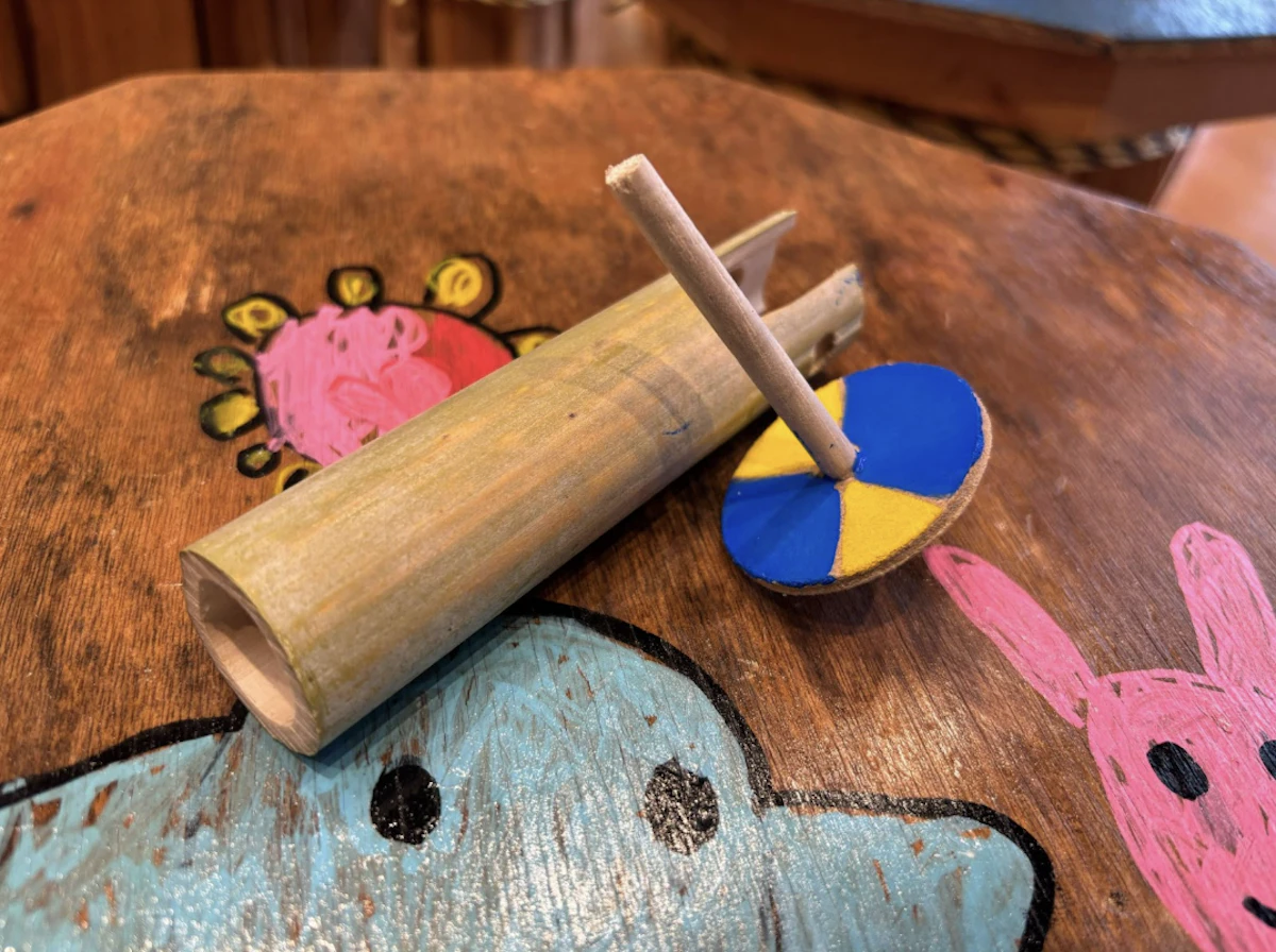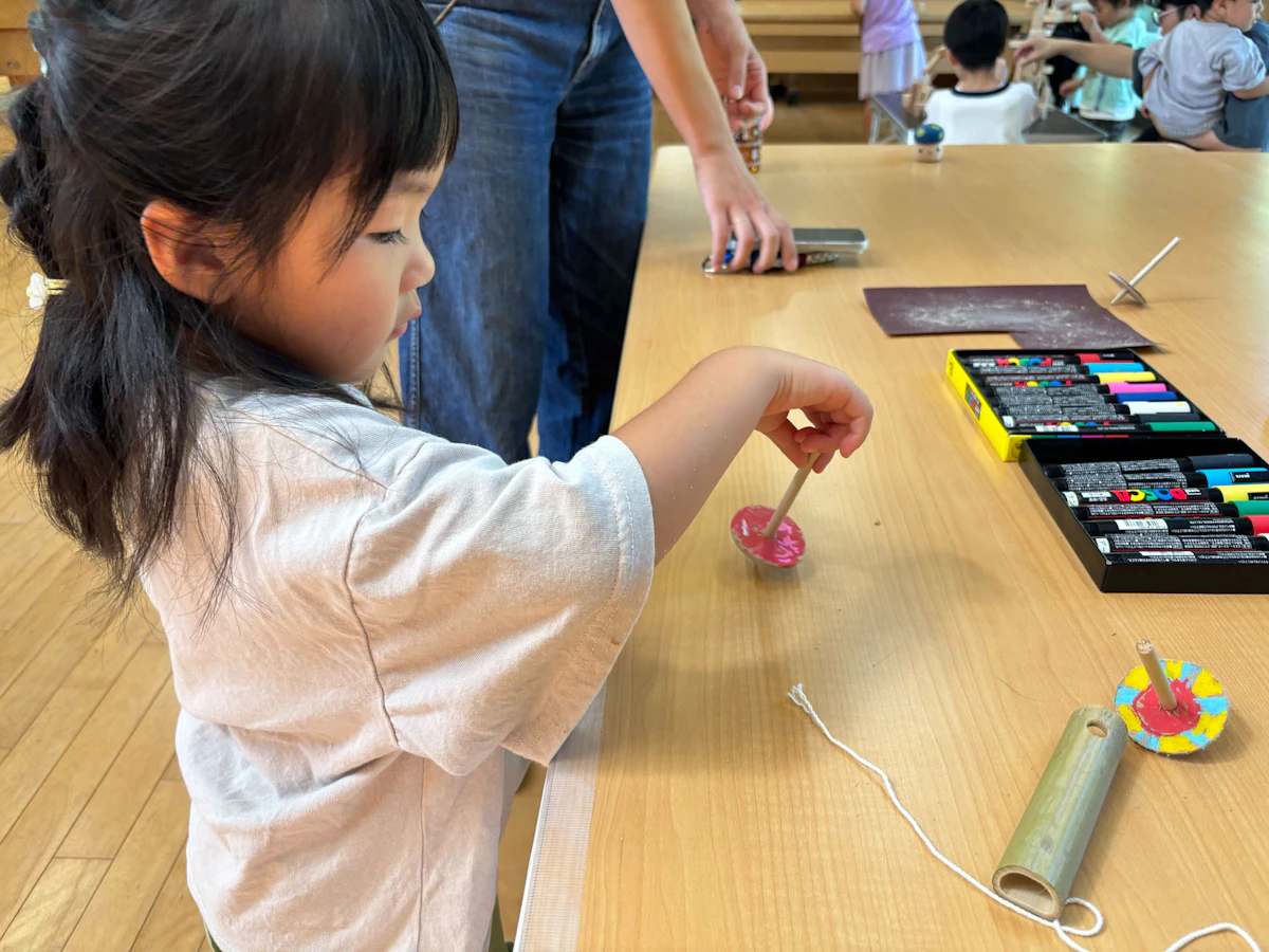 削って、描いて、色を塗って完成! 出来たら、その場ですぐに回して遊べます。