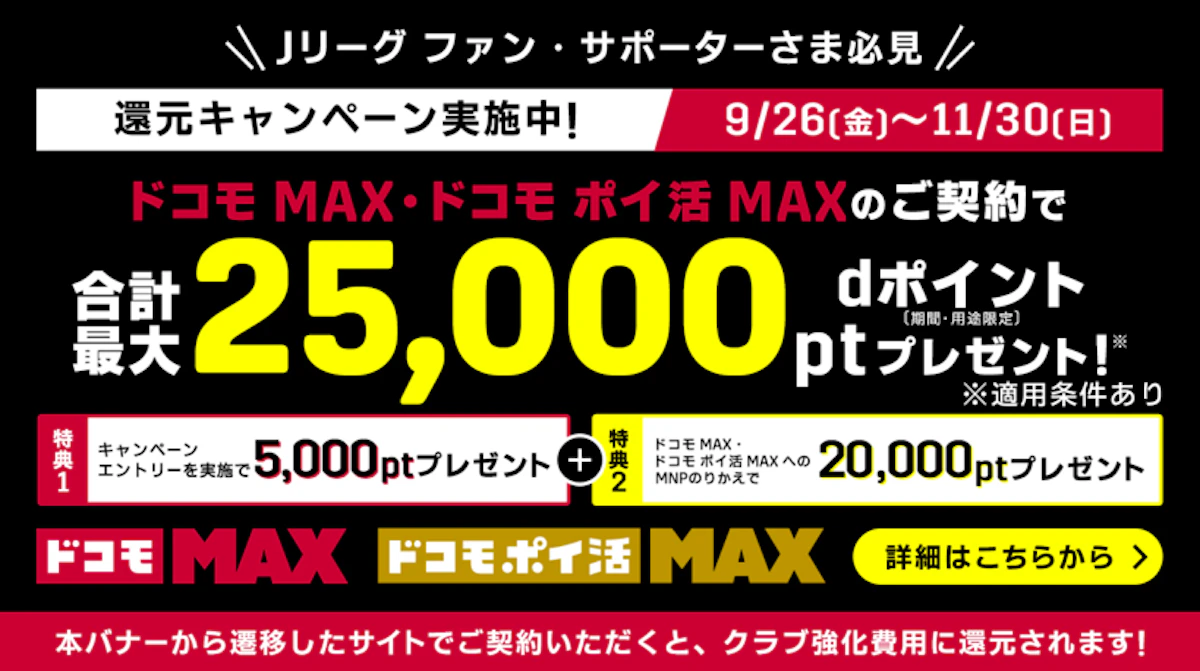 また、株式会社NTTドコモとの協業により、「ドコモ MAX」「ドコモ ポイ活 MAX」のご契約とエントリーでdポイントがもらえるキャンペーンを実施します。