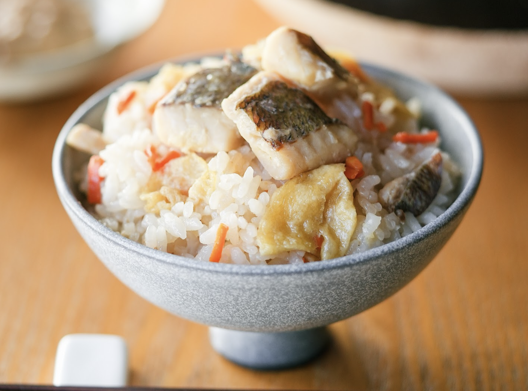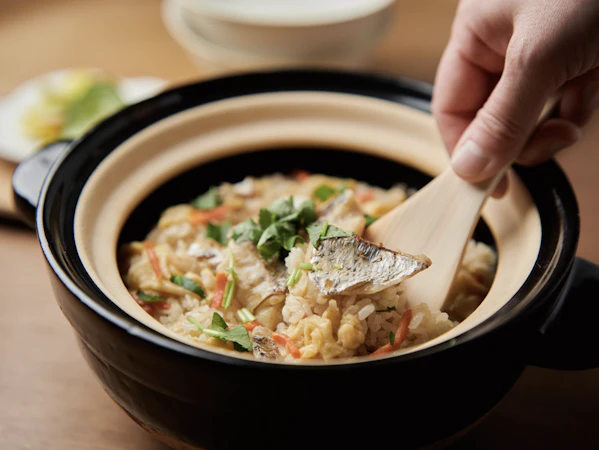 具材は、鮮度の良いうちに捌いて焼き上げた瀬戸内海産の天然真鯛と、焼きアラから取った濃厚な出汁を合わせました。風味豊かで深い味わいの鯛めしを是非ご賞味ください。