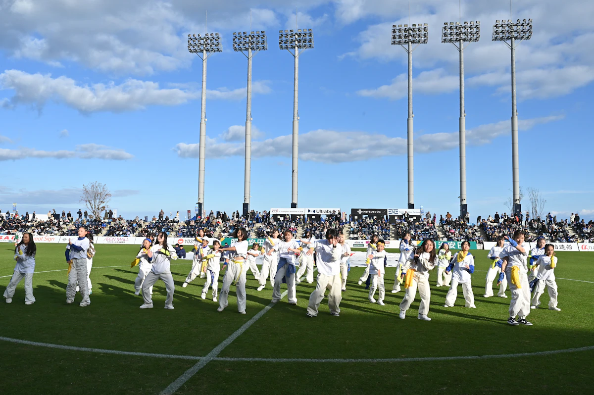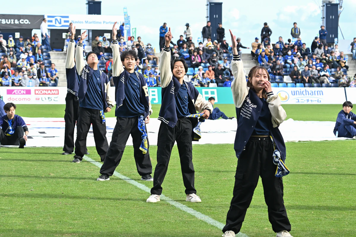 FC今治高等学校里山校 一期生・二期生です。FIFAワールドカップの日本代表応援ソングのvictoryとFC今治応援ソングをBe the Braveを編曲した音楽でLDHのTETSUYAさんが作ってくださったダンスを踊ります。ダンスが得意な生徒、苦手な生徒がいる中で一生懸命練習してきました。精一杯頑張るので、温かく見守ってください。