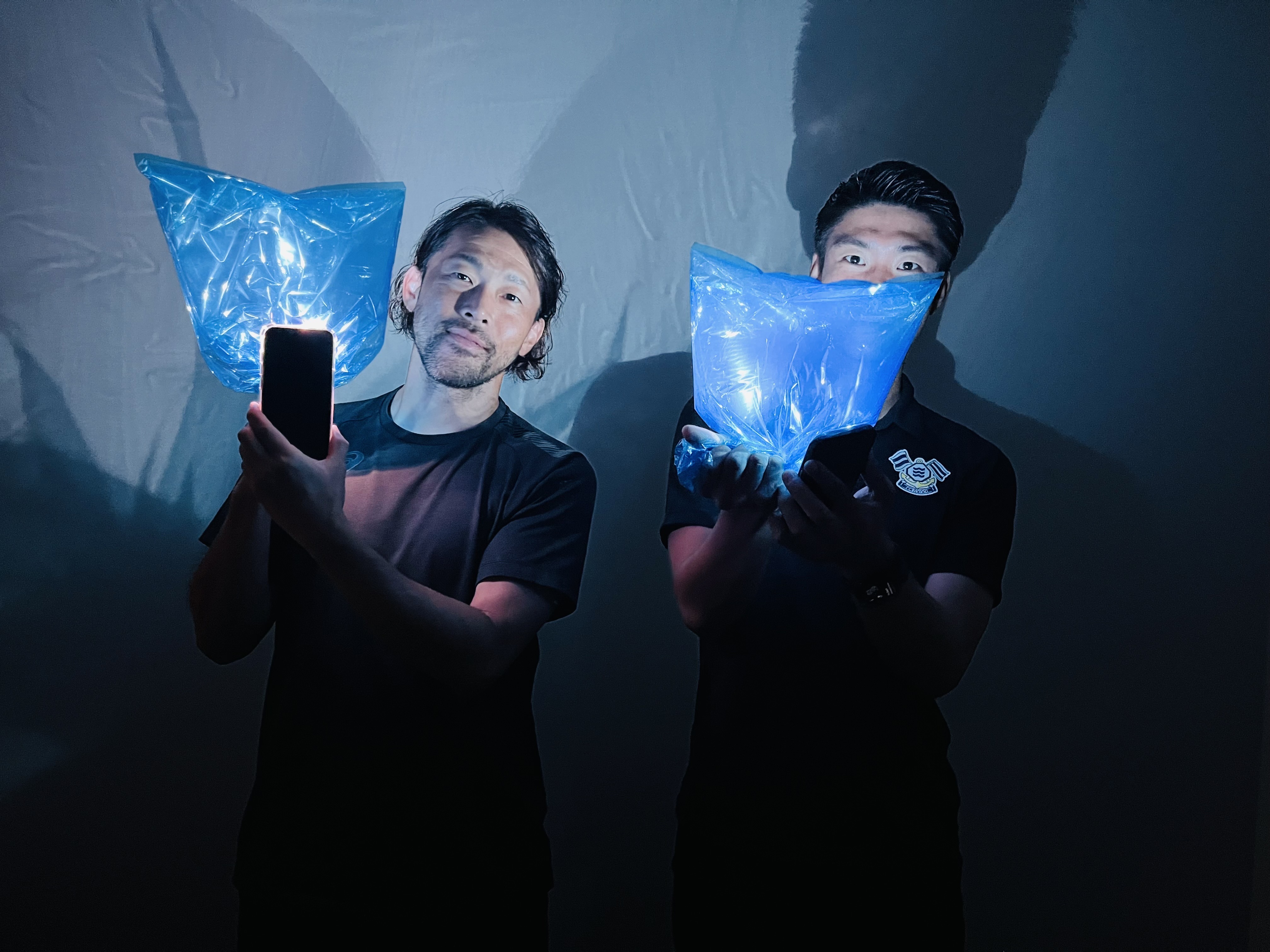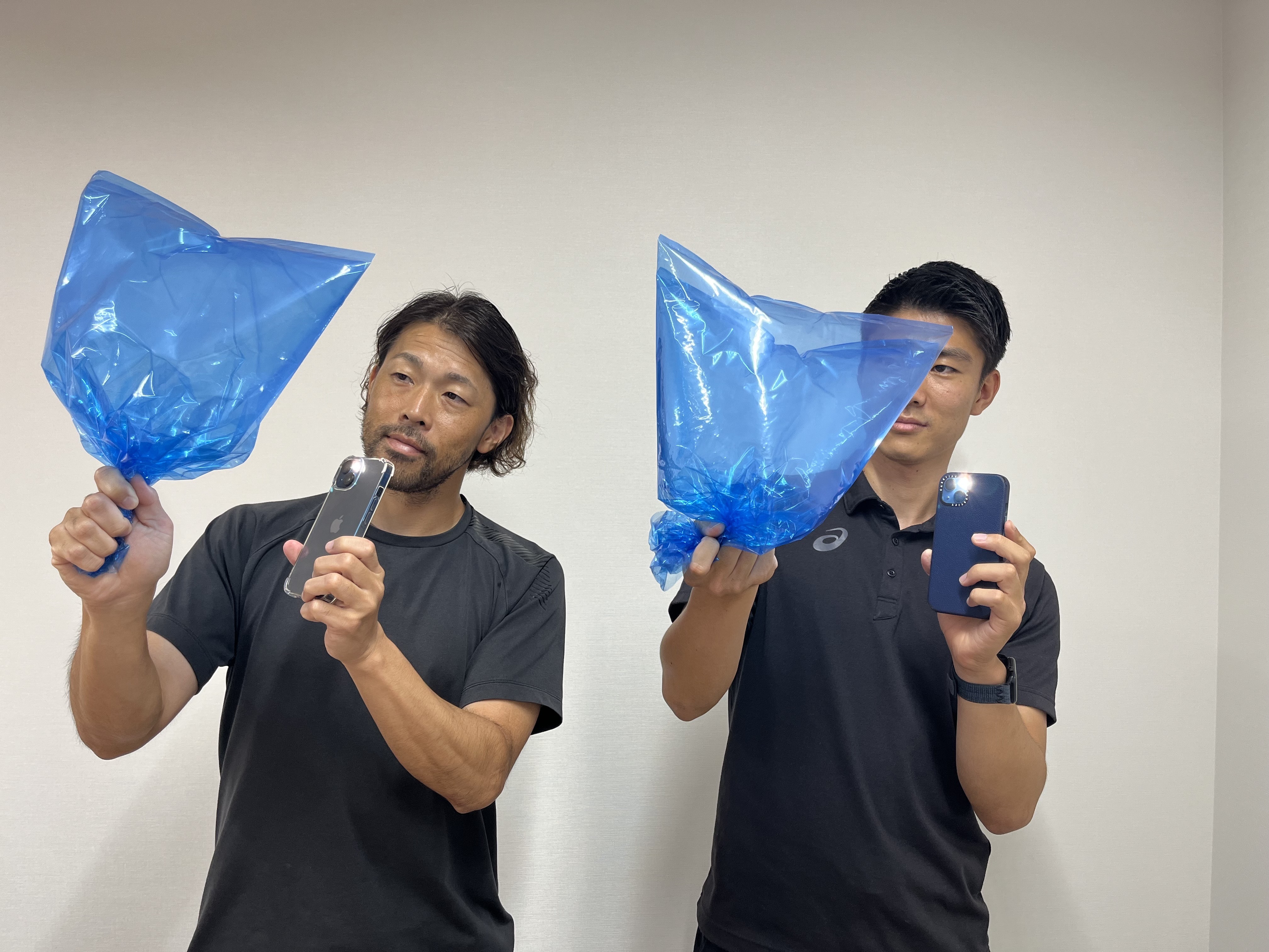 袋を膨らませて、スマホ等のライトで照らしてください。